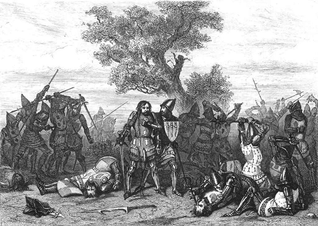 Le jour et le lieu du combat sont arrêtés : ce fut le samedi 26 mars 1351, près du chêne sur la lande de Mi-Voie, à égale distance des deux châteaux.